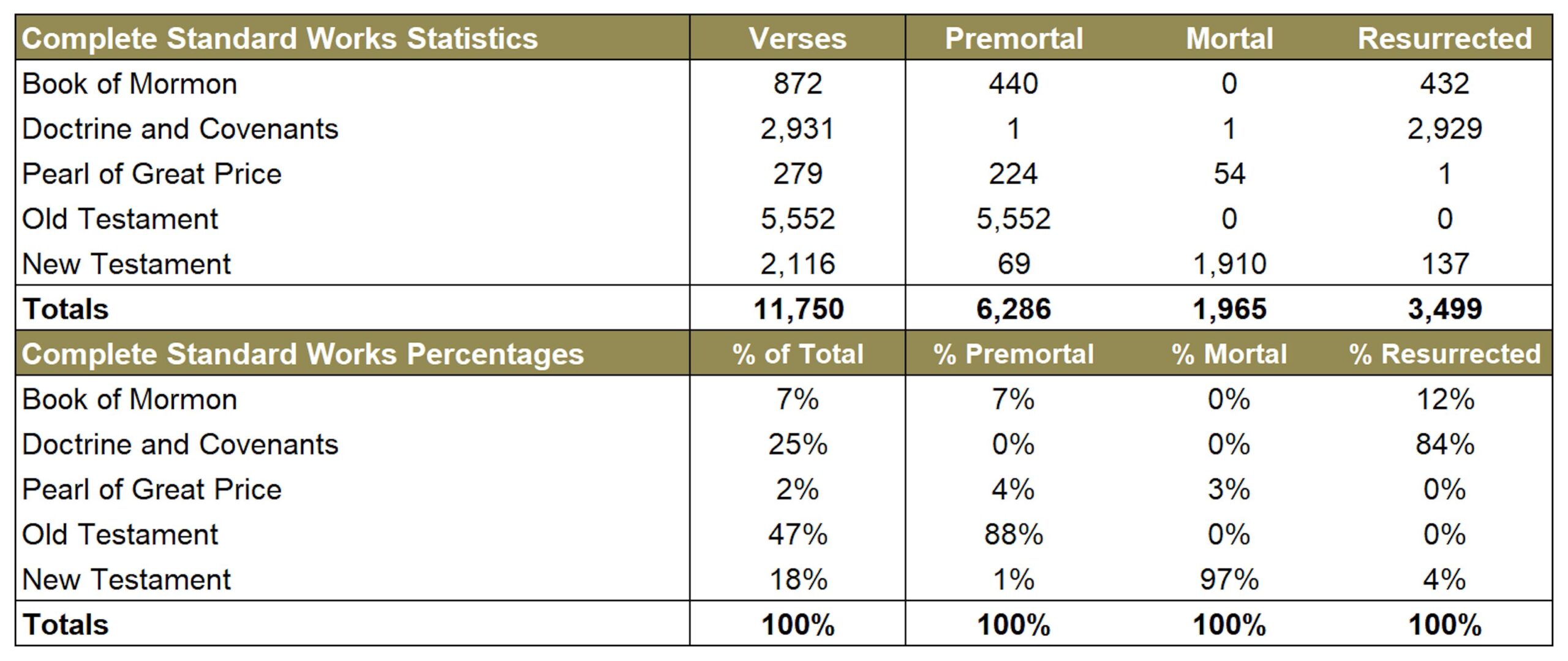The following data tables provide some interesting information about the words of Jesus Christ found in the Holy Scriptures. These criteria are searchable filters on this website.